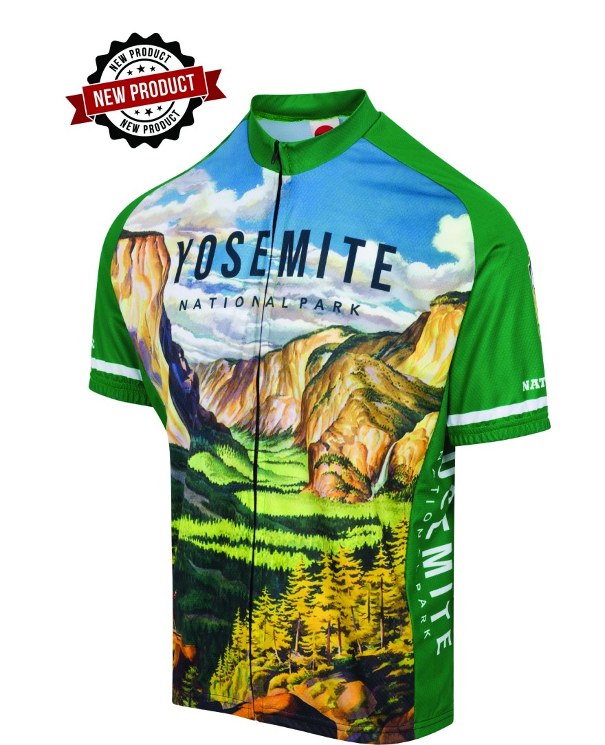 This Officially Licensed Yosemite Cycling Jersey is made out of 100% DrySport Polyester for full breathability. Full Lengthhidden zipper. Elastic waist and cuffs. Three rear pockets for storage. Yosemite Cycling Jersey